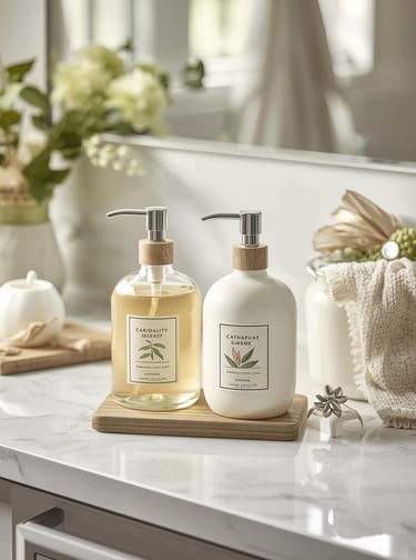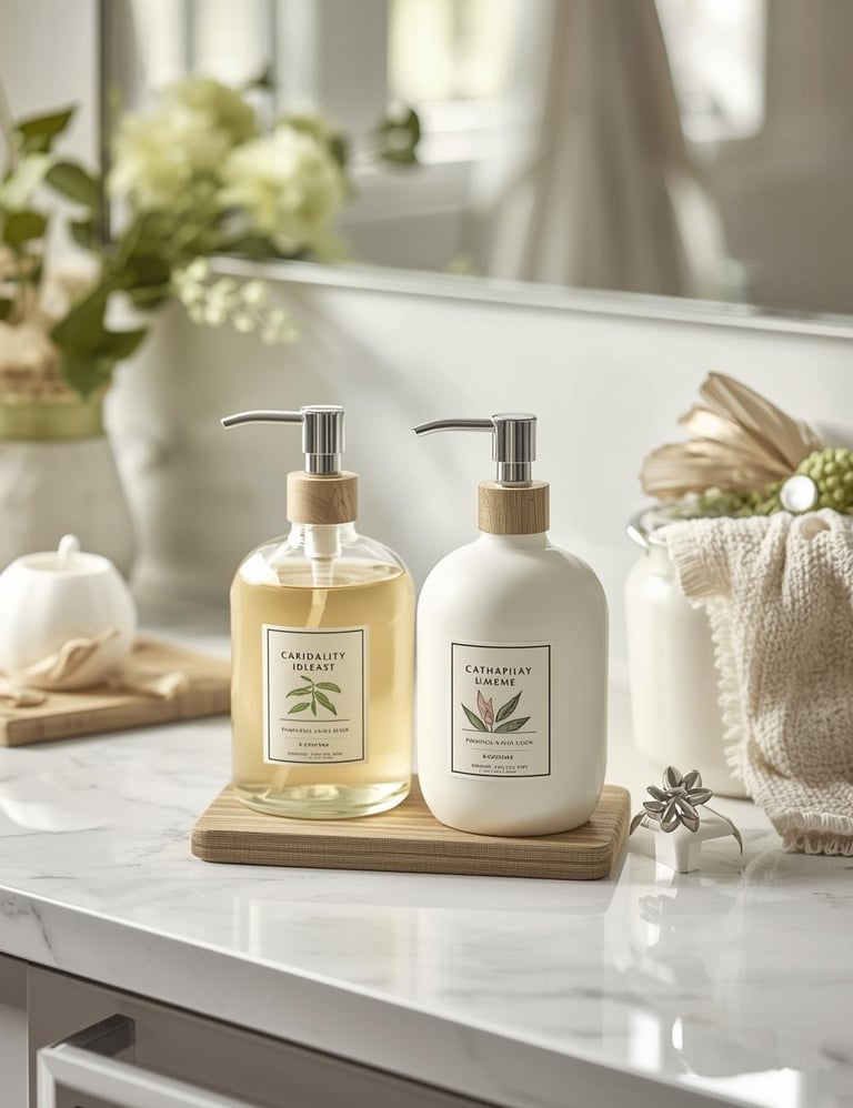 I love choosing natural brands with beautiful packaging that look gorgeous sitting on a countertop or beside the sink. Think glass bottles, elegant pump dispensers, and labels that feel more like home decor than drugstore basics. Brands that use quality ingredients and essential oils rather than synthetic fragrances feel more special and are better for their skin too.