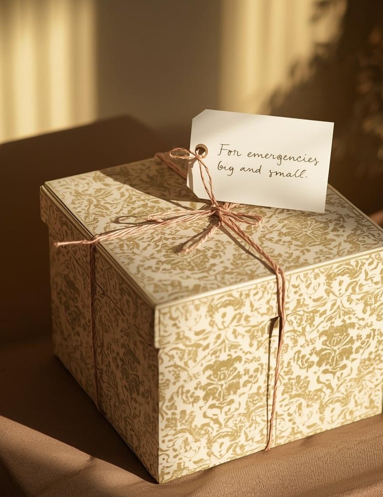 Let's end with a gift that's equal parts thoughtful and practical—a "home emergency" basket! This is one of those gifts that might not get the most enthusiastic reaction at the party, but months later when they need it, they'll think "Thank goodness [your name] thought of this!" It's the ultimate "I'm looking out for you" gift.