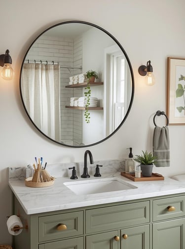 The finishing touches matter—curated accessories transform your bathroom from functional to intentionally designed. Invest in matching soap dispensers and toothbrush holders that elevate everyday essentials beyond plastic basics. Corral smaller items on decorative trays for organized elegance, add candles for instant spa ambiance, and choose humidity-resistant artwork that withstands moisture without warping. Don't forget greenery—real or high-quality faux plants bring life without high maintenance. These thoughtful details work across every bathroom style, proving that the smallest touches often make the biggest impact. It's the difference between decorated and truly finished.