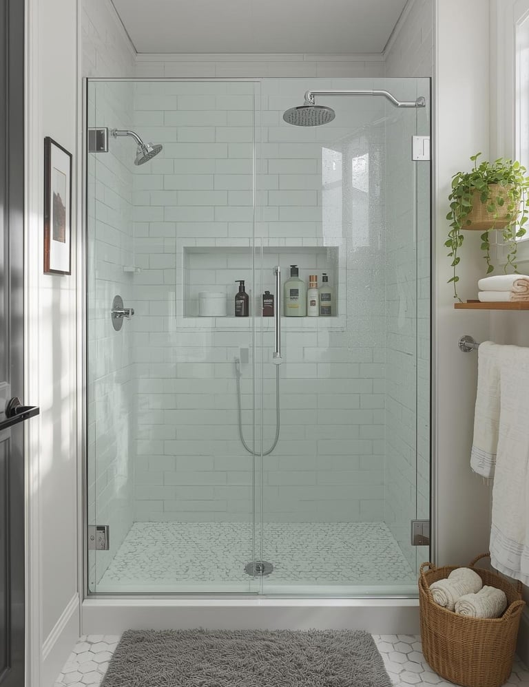 Open up your bathroom visually with frameless or framed glass shower enclosures that make everything feel bigger and brighter. Frameless glass delivers seamless, spa-like sophistication while black-framed options add modern architectural edge without blocking light flow. Glass enclosures showcase beautiful tile work instead of hiding it behind curtains and prevent that closed-off, cramped feeling traditional shower stalls create. Maintenance reality check: they require regular squeegee action to prevent water spots, but the spacious, airy payoff is absolutely worth it. Modern bathrooms and small spaces desperately needing openness thrive with this light-maximizing, space-expanding essential.