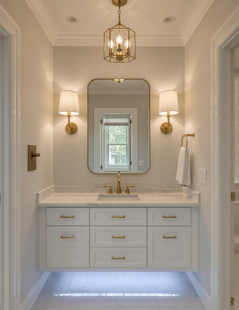 Ditch the single harsh overhead light and embrace layered lighting that actually flatters and functions beautifully. Install sconces flanking your mirror for shadow-free grooming, add pendant lights for style with purpose, or mount dimmer switches to control mood from energizing morning prep to relaxing evening soak. LED strip lighting under floating vanities creates modern ambiance, while a small chandelier in powder rooms delivers unexpected glamour. The secret is multiple light sources at different heights creating depth and versatility. Primary bathrooms especially deserve this thoughtful approach that elevates functionality into pure atmosphere.