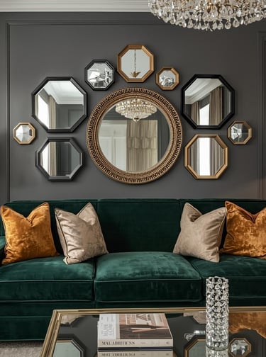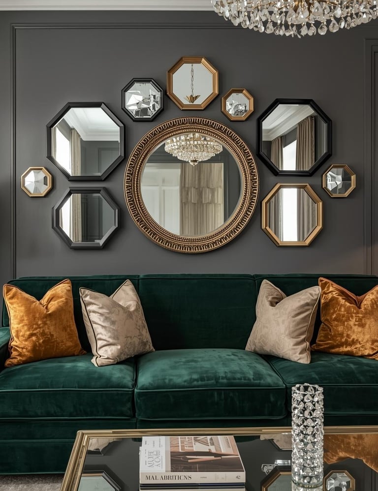 Why settle for one mirror when a collection creates seriously stunning dimension? Layering multiple mirrors in different shapes and sizes adds glamorous depth while maximizing light reflection throughout your space. Mix round, rectangular, and uniquely shaped mirrors with varied frame finishes—think antique gold, sleek black, and ornate silver for eclectic sophistication. Arrange them in an organic cluster or structured grid depending on your vibe, keeping consistent spacing for cohesion. This approach works beautifully in glam, transitional, and eclectic interiors where layered luxury feels right at home. The reflective surfaces bounce light around your room, making everything feel brighter, bigger, and infinitely more interesting than a single mirror ever could.