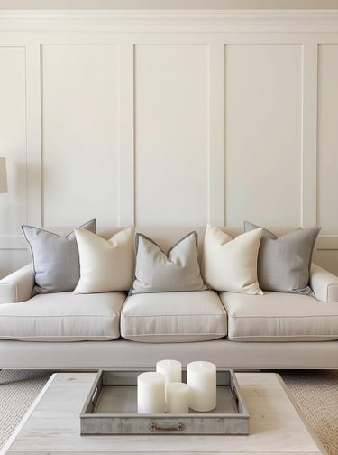 Architectural details like board and batten, wainscoting, or decorative wall panels add instant sophistication and dimension that paint alone can't achieve. This approach creates a custom, high-end look by adding texture and visual interest directly to your wall structure. Install classic vertical board and batten for farmhouse charm, horizontal shiplap for coastal vibes, or geometric paneling for modern elegance. Paint it all one color for subtle dimension or use contrasting tones for dramatic impact. This semi-permanent solution works beautifully in traditional, farmhouse, and coastal spaces where architectural character matters. The result? A professionally designed look that elevates your entire room without hanging a single thing.