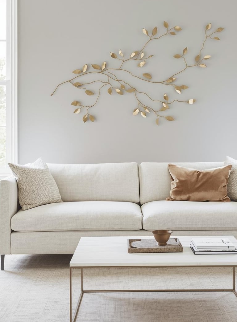 Metal wall art brings dimensional drama that flat artwork simply can't match. These sculptural pieces cast intriguing shadows and catch light throughout the day, creating a living artwork that evolves with your space. Choose from geometric designs for modern edge, nature-inspired motifs like branches or abstract leaves for organic appeal, or industrial gears and abstract shapes for urban loft vibes. The three-dimensional quality adds serious depth without taking up floor space—a win for rooms craving personality without clutter. Metal finishes in matte black, brushed gold, or weathered bronze complement minimalist and industrial aesthetics beautifully. This bold choice makes a statement while staying timelessly chic.