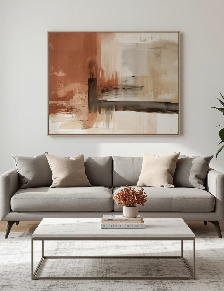 Nothing commands attention quite like a single, oversized piece of art anchoring your sofa wall. This is your moment to go bold—think large-scale abstract paintings, dramatic photography, or eye-catching modern prints that make guests stop and stare. The key is scale: aim for artwork that's two-thirds to three-quarters the width of your sofa to create perfect visual balance. Skip the tiny gallery pieces here and embrace size that matches your ambition. Whether you invest in an original piece or find an affordable print, oversized art instantly elevates your space from ordinary to gallery-worthy. Modern and contemporary rooms especially shine with this confident, minimalist approach.