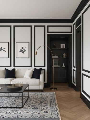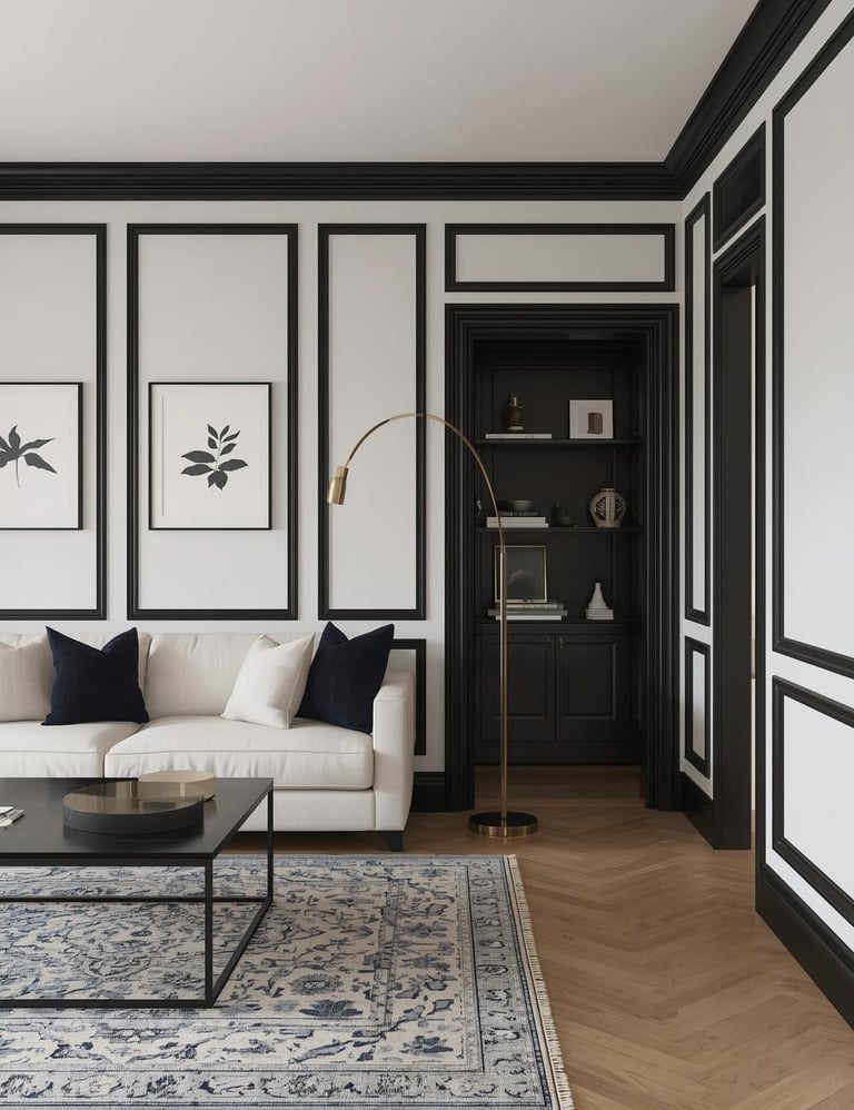 Transform plain walls into architectural moments with statement molding that demands attention. Think oversized crown molding, dramatic baseboards, wainscoting, and picture frame molding creating visual interest where builder-grade blankness once lived. Take it further: paint trim in contrasting colors like black, navy, or forest green against lighter walls for modern edge. These architectural details add character and sophistication that feel custom and intentional, not cookie-cutter suburban. Traditional, transitional, and modern eclectic spaces all benefit. Many projects are surprisingly DIY-friendly with patience and the right tools—instant architectural upgrade without the contractor price tag.