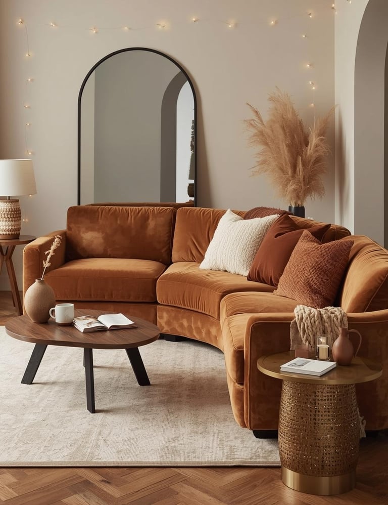 Sharp angles are taking a backseat to soft, organic curves that make your living room feel like an actual sanctuary. Rounded sofas, arched mirrors, and circular coffee tables create visual flow and unexpected comfort that boxy furniture just can't match. The curved aesthetic softens modern spaces while adding sculptural interest that commands attention. Mix curved pieces with some linear elements to avoid feeling like you're living inside a bubble. Modern, contemporary, and transitional spaces absolutely thrive with this sophisticated-yet-approachable trend that's equal parts art and comfort.