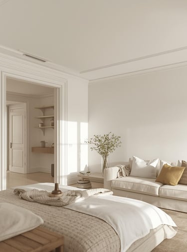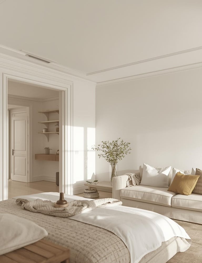 This is especially powerful in bedrooms where calm is key, in small spaces that benefit from visual breathing room, or in rooms where you already have plenty of visual interest from furniture, windows, or other architectural elements.