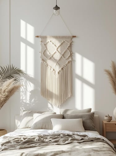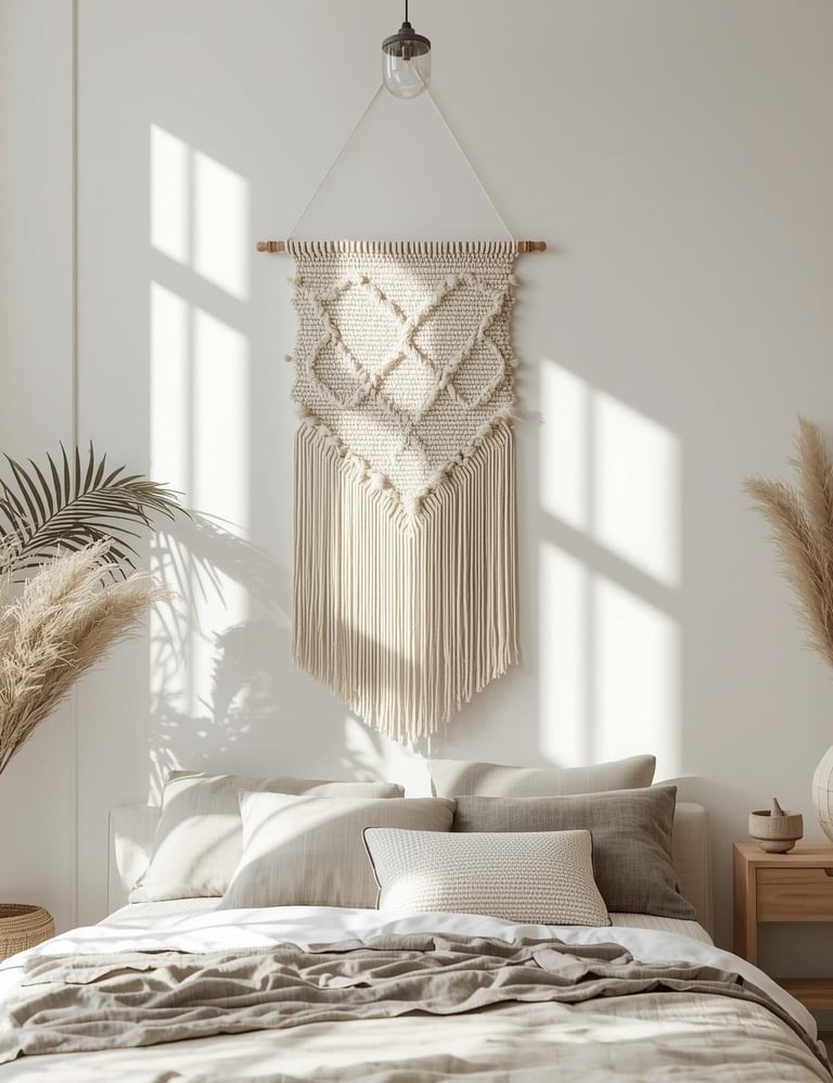 I have a simple cream-colored macramé hanging above my bed, and it adds so much warmth and organic texture to the space. What I love most is how it softens the room without competing with anything else. It's just there, quietly beautiful, adding that tactile element that makes minimalist spaces feel more inviting and less stark.