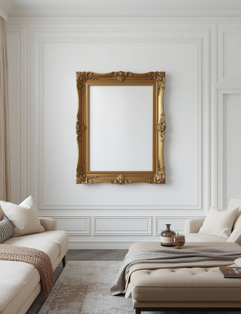 I stumbled upon this idea when I found a gorgeous vintage frame at a thrift store but couldn't find the right art to fill it. On a whim, I hung it empty on my wall, and I honestly love it more than if I'd filled it with a print! The ornate gold detailing stands out beautifully against my white wall, and there's something so intentional and artistic about the emptiness inside.