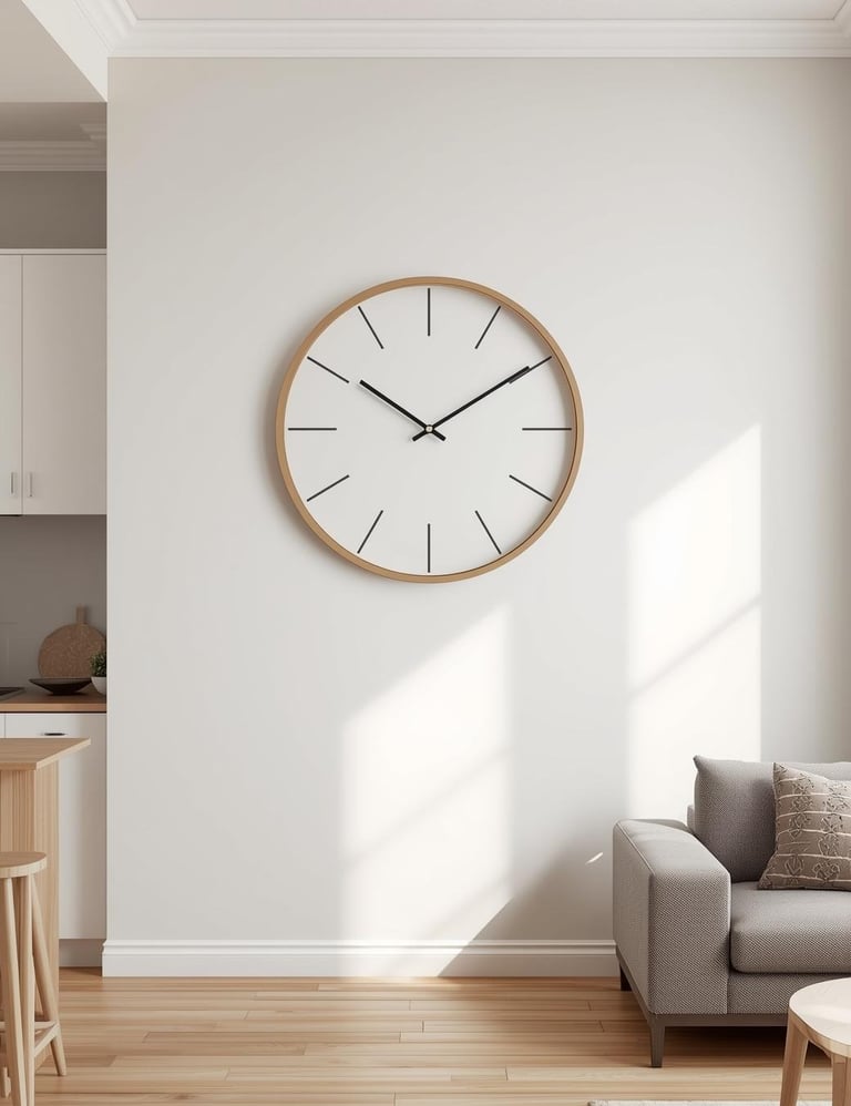 The key to using a clock as minimalist decor is choosing one with clean lines and simple design. Look for clocks with uncluttered faces, minimal or no numbers, simple hands, and neutral colors. Modern metal clocks with sleek lines, natural wood clocks with Scandinavian vibes, or classic white clocks with black details all work beautifully in minimalist spaces.